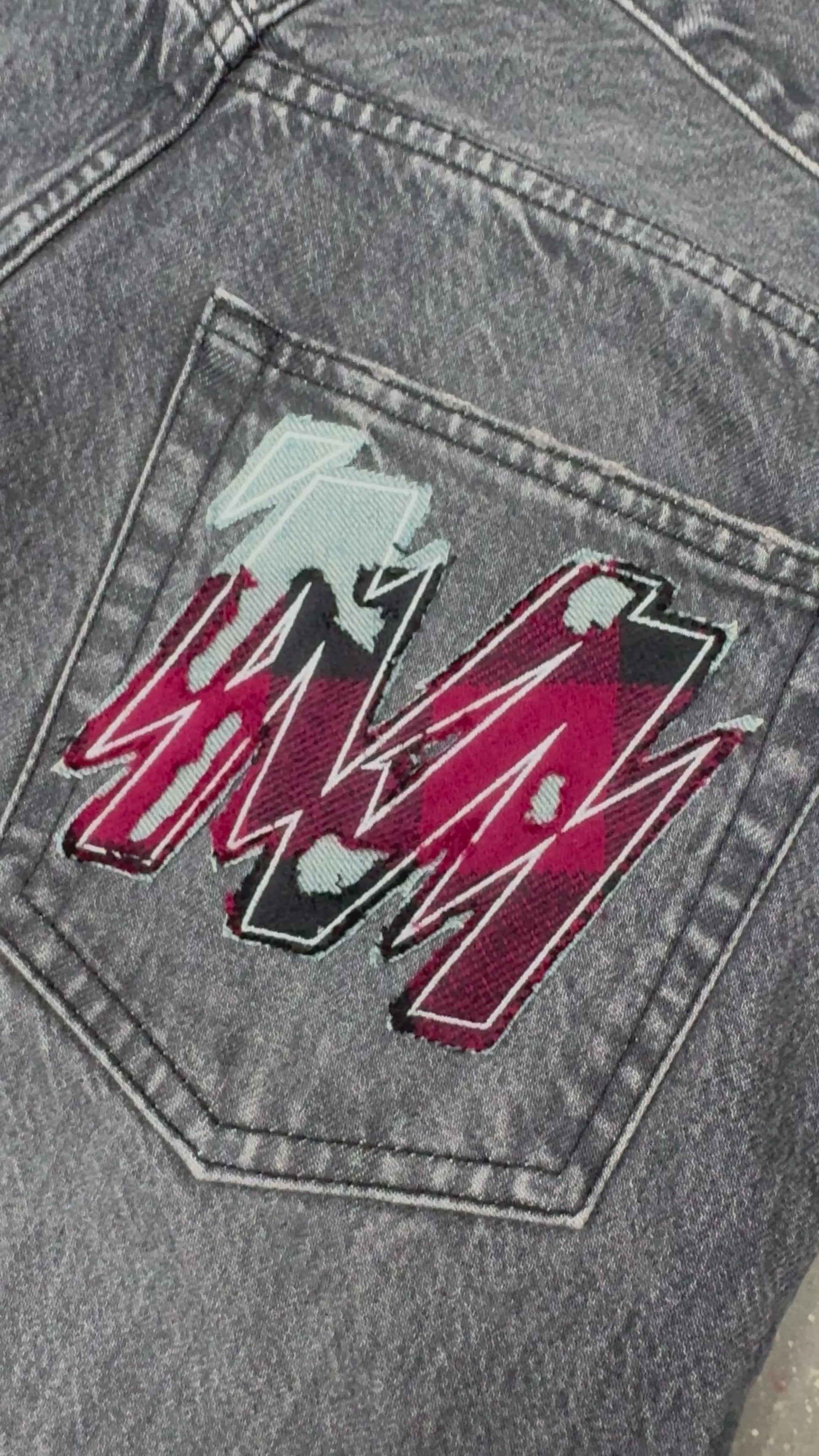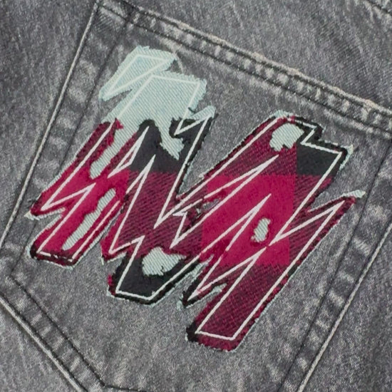 Straight leg Denim with 1 of 1 appliqué M logo on each pair