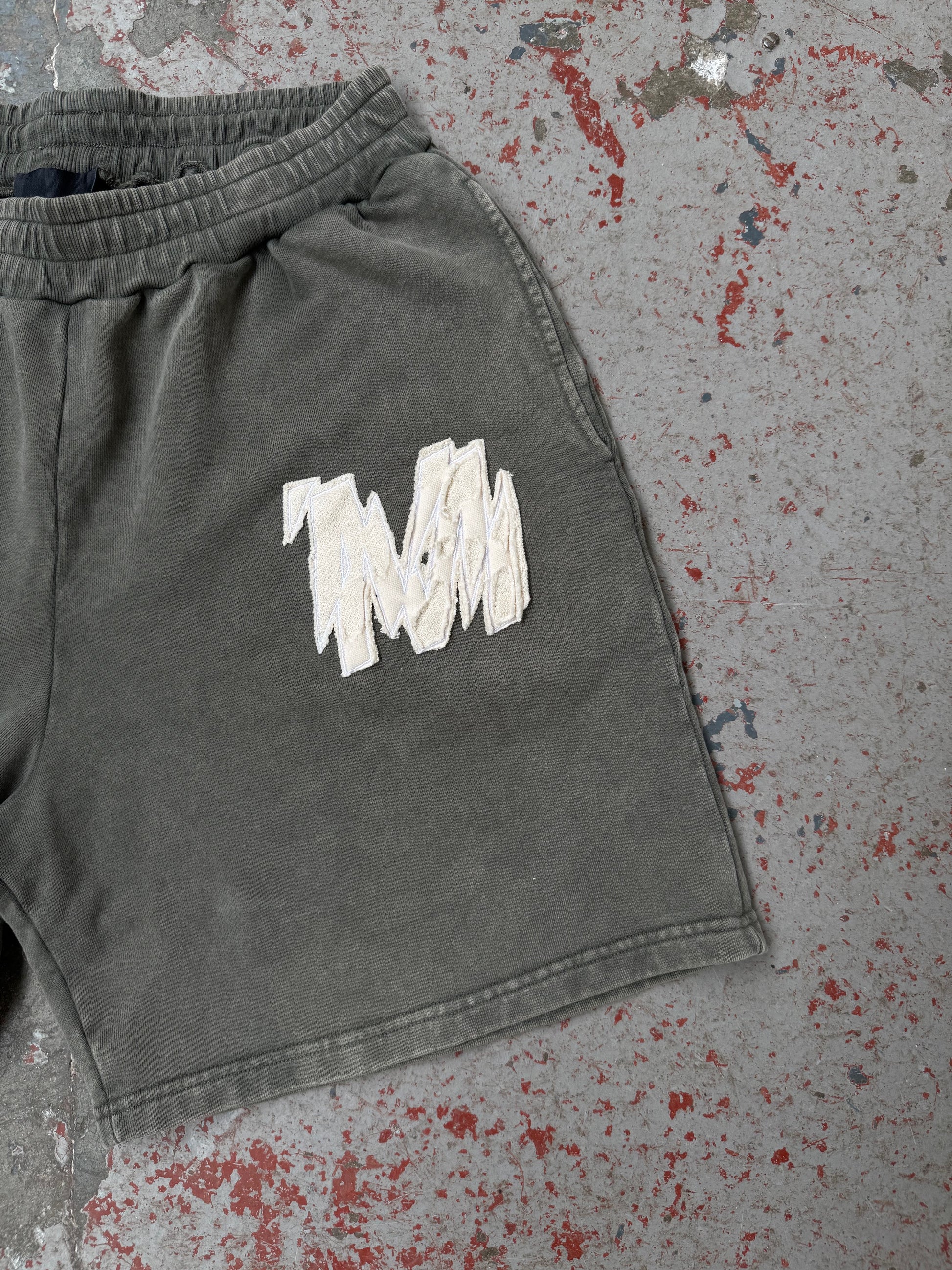 Organic Sweat Shorts in Vintage Olive with 1 of 1 patchwork embroidery logo