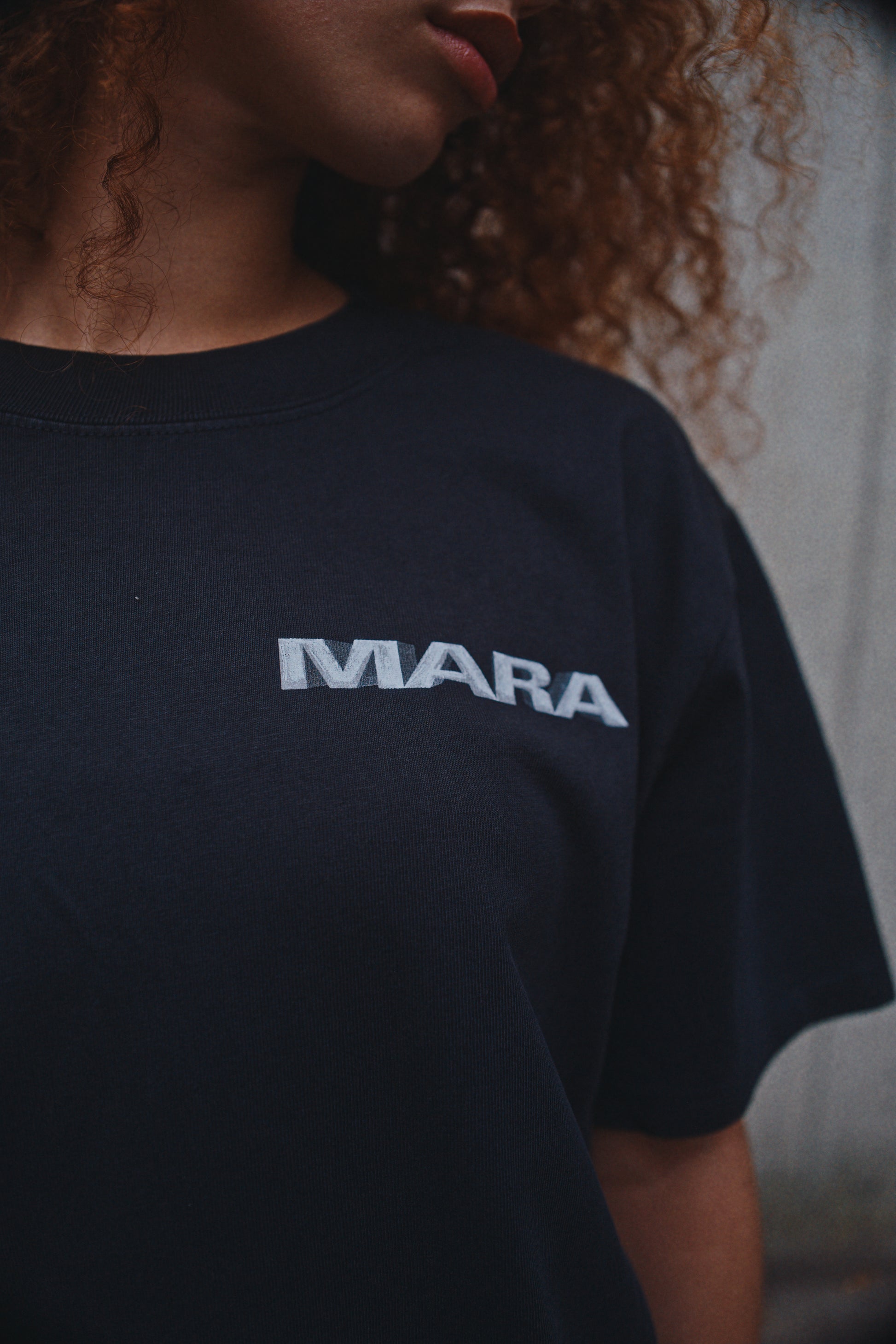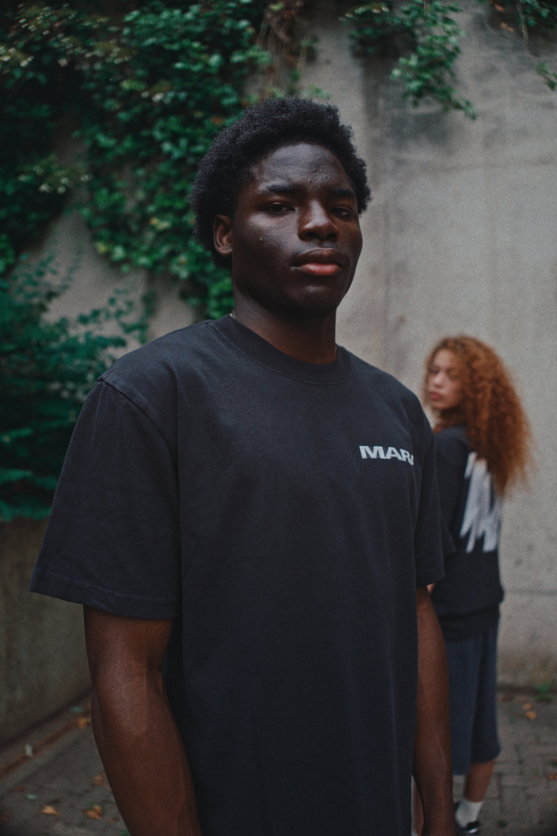 240 GSM weight and garment dye finish, dropped shoulders, and twin-stitched wide neck ribbing.