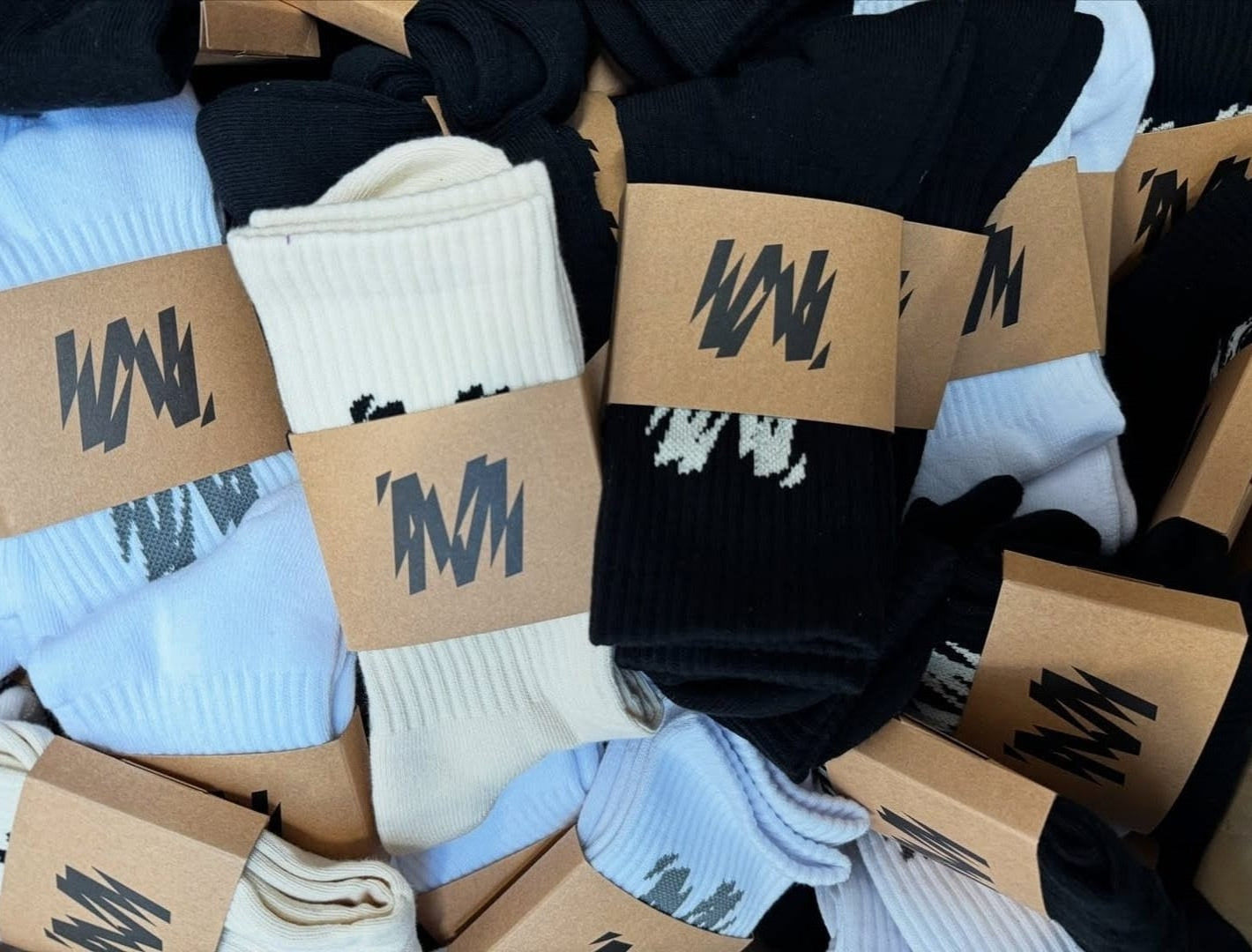 Woven shatter M logo socks made from 100% cotton.